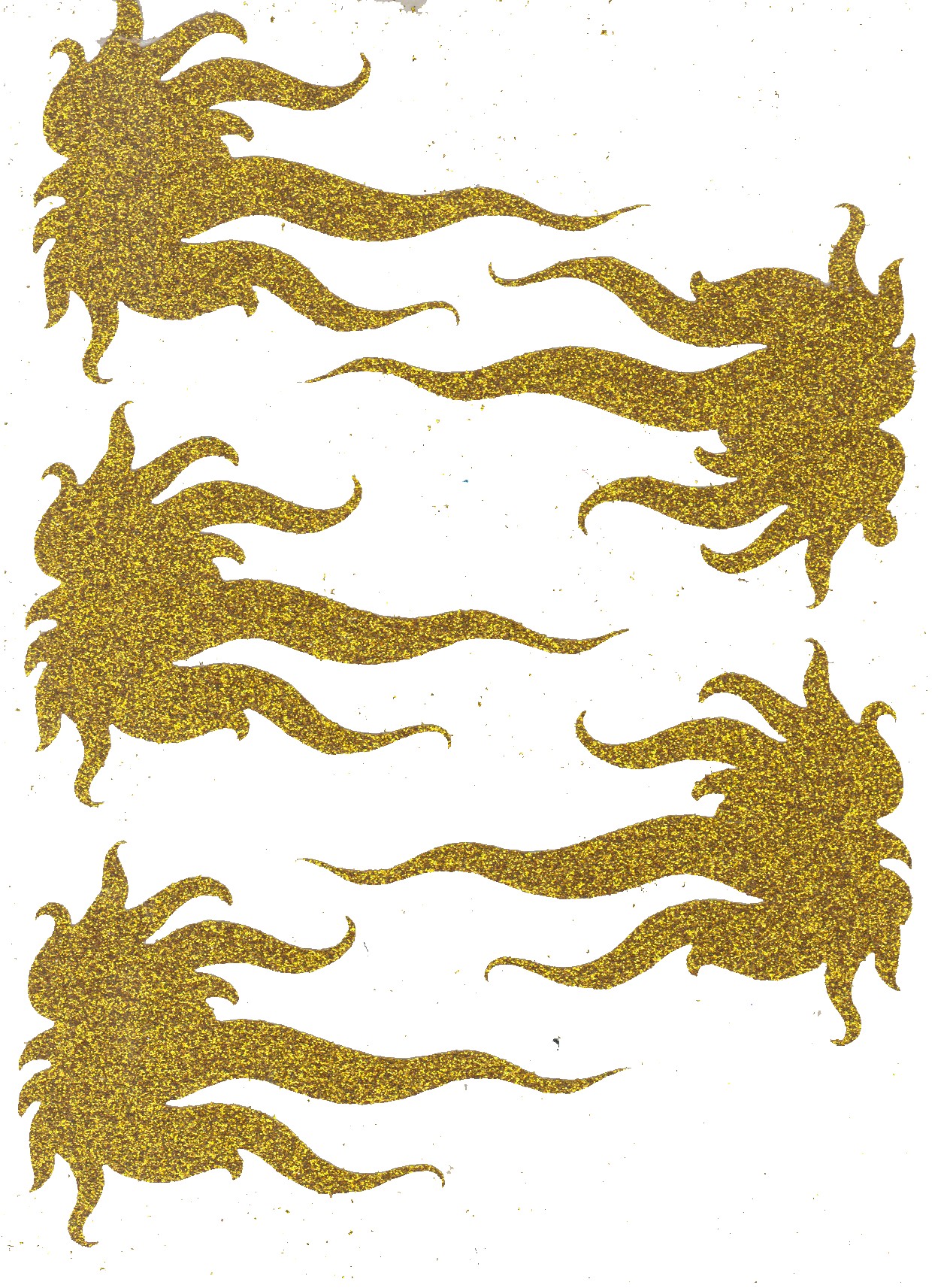 5 Stück je Bogen. Sie kaufen einen Bogen mit 5 Stück Flammen