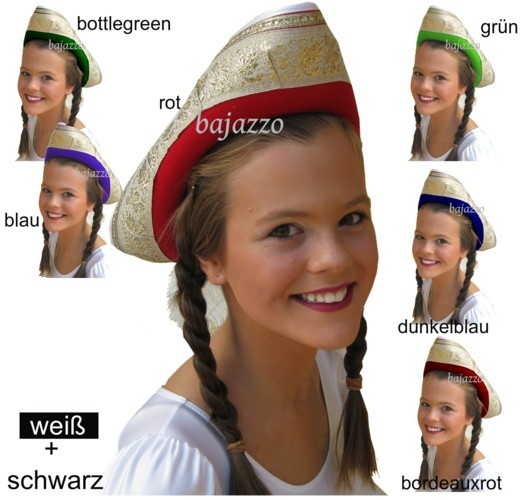 Die Hüte können auch überzogen werden mit passendem Stoff zum Kostüm. Der Preis ist 50 EURO-auch mit Stoff,den Sie uns schicken.