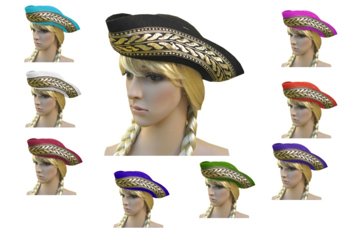 In den Größen 55, 57 + 59 lieferbar. Rot, schwarz, blau, Grün und Weiß. Federfarbe und Paillettenband frei wählbar.