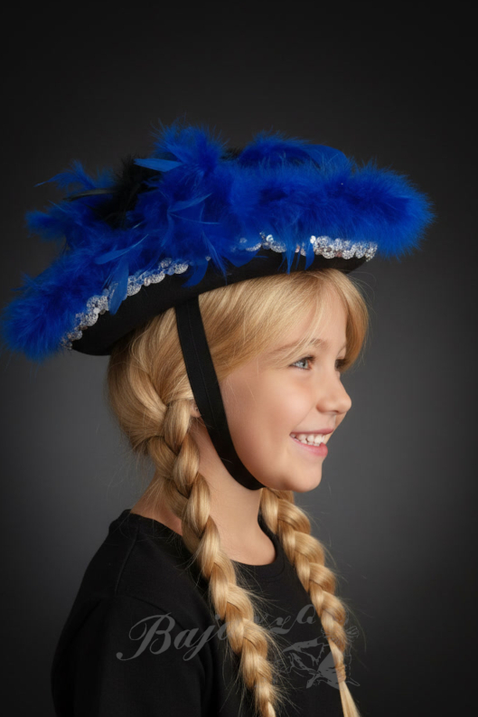 In den Größen 55, 57 + 59 lieferbar. Rot, schwarz, blau, Grün und Weiß. Federfarbe und Paillettenband frei wählbar.