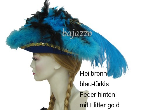 In den Größen 55, 57 + 59 lieferbar. Rot, schwarz, blau, Grün und Weiß. Federfarbe und Paillettenband frei wählbar.
