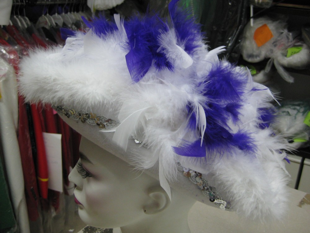 Gardehut weiß mit Paillettenband silber, Federnest lila-weiß