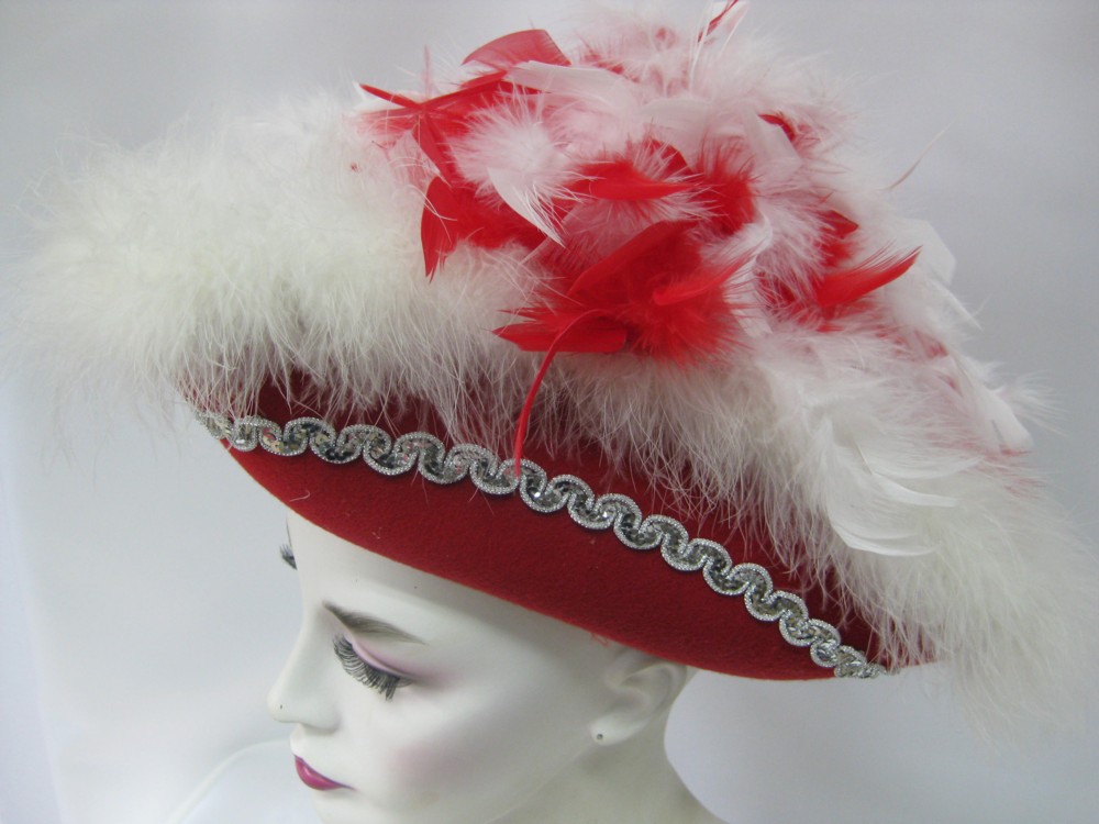 Roter Wollfilz Dreispitze mit rot-weißem Federnest