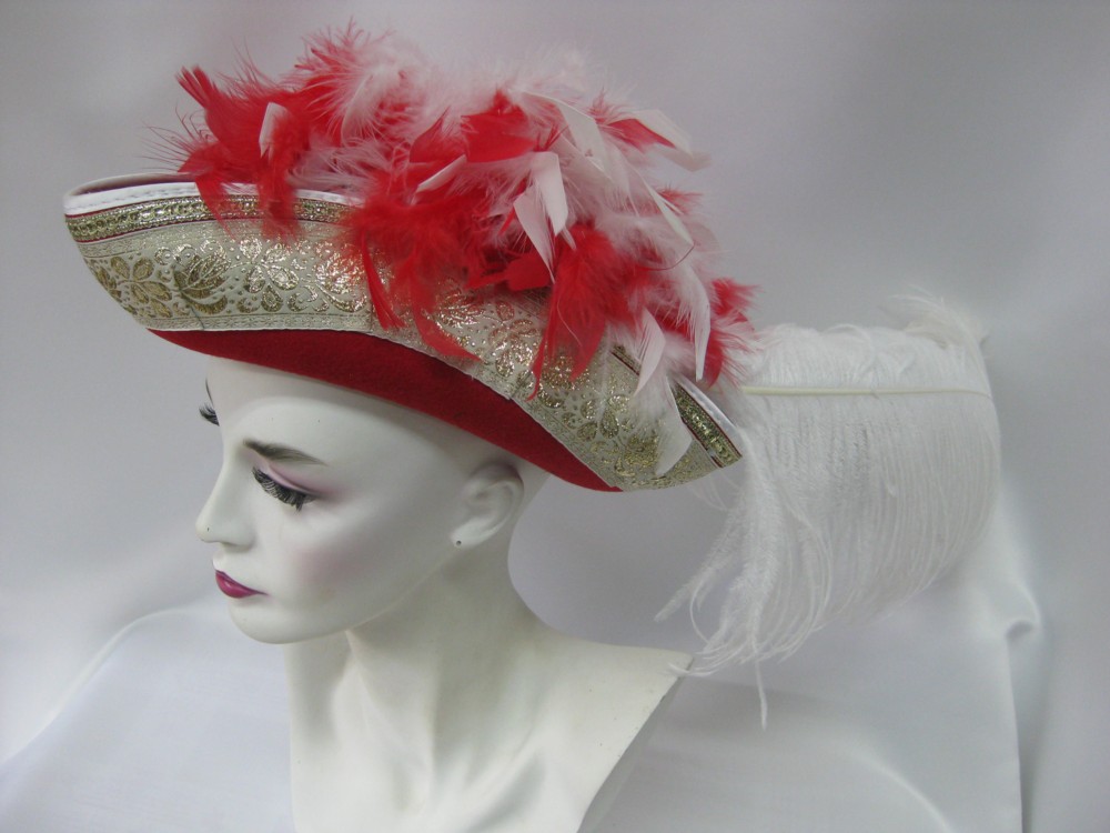 Tanzhut schwarz-weiß-rot Gr. 57/58 Leichter Wollfilz ( Hut Münster )