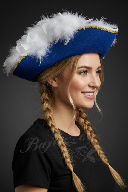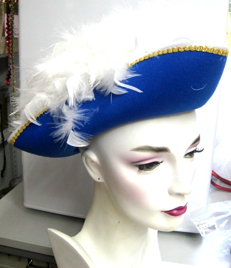 Tanzmariechenhut blau mit weißem Federnest ( Hut Rheine , goldlitze )