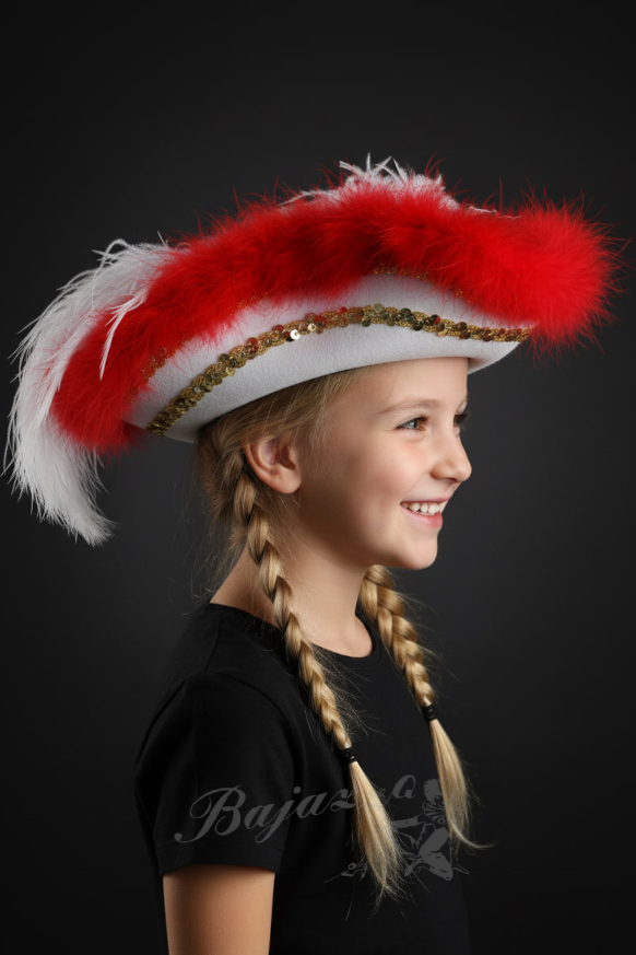 Weiß-roter Mariechenhut Wollfilz . ( Hut Heidelberg )