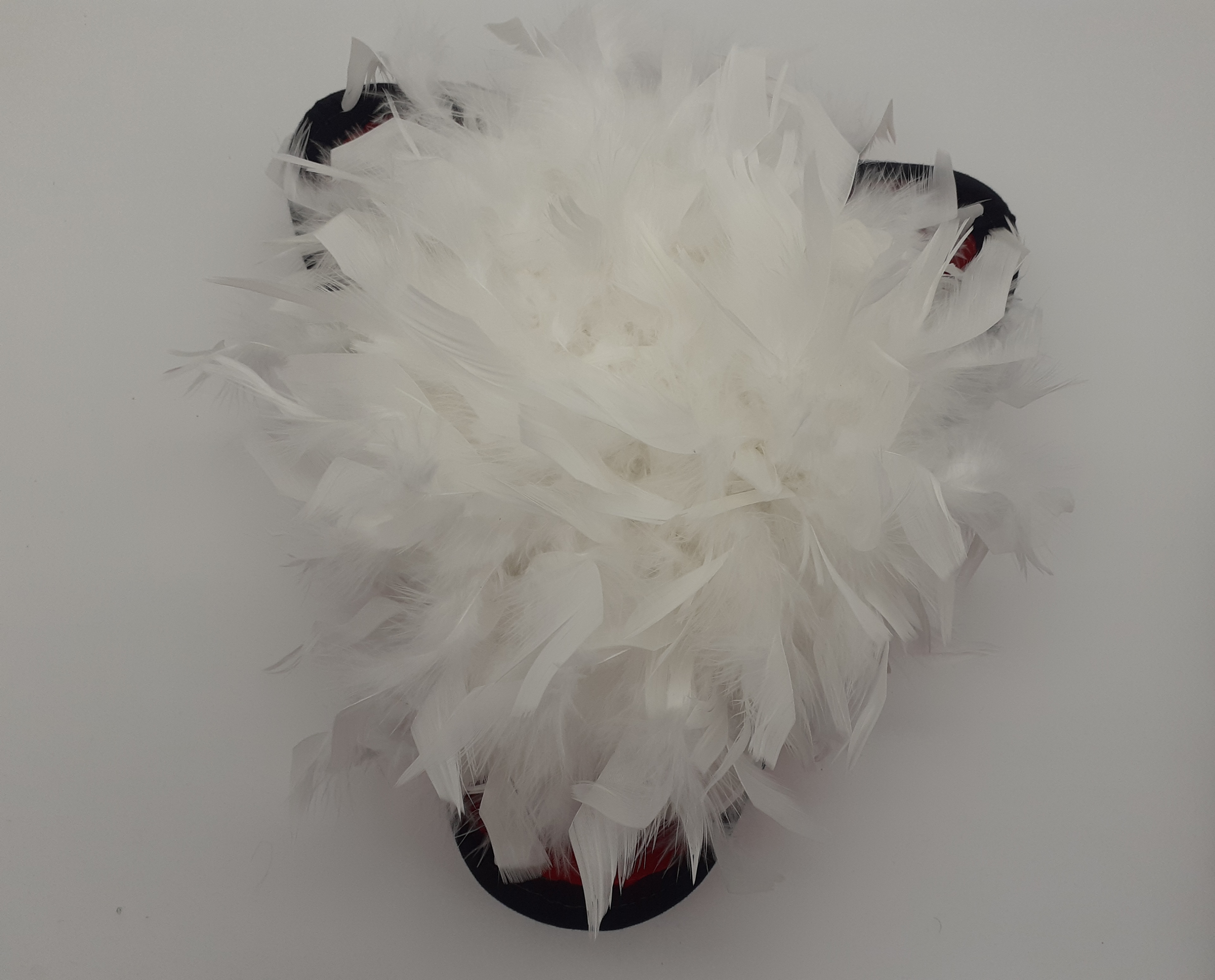 Das schwarze Einfassband sorgt für einen klaren Kontrast, während die weißen Federn dem Hut eine elegante, festliche Note verleihen. Ein silbernes Pailletten-Strassband bringt zusätzlichen Glanz und macht den Hut zum echten Hingucker. Gefertigt aus leichtem Polyester bietet der Hut einen angenehmen Tragekomfort.