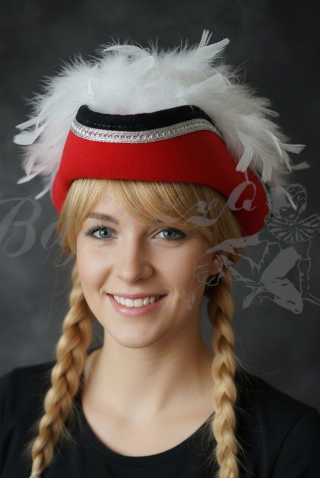 Roter Dreispitz „Rheine“ – mit Federn & Glitzer