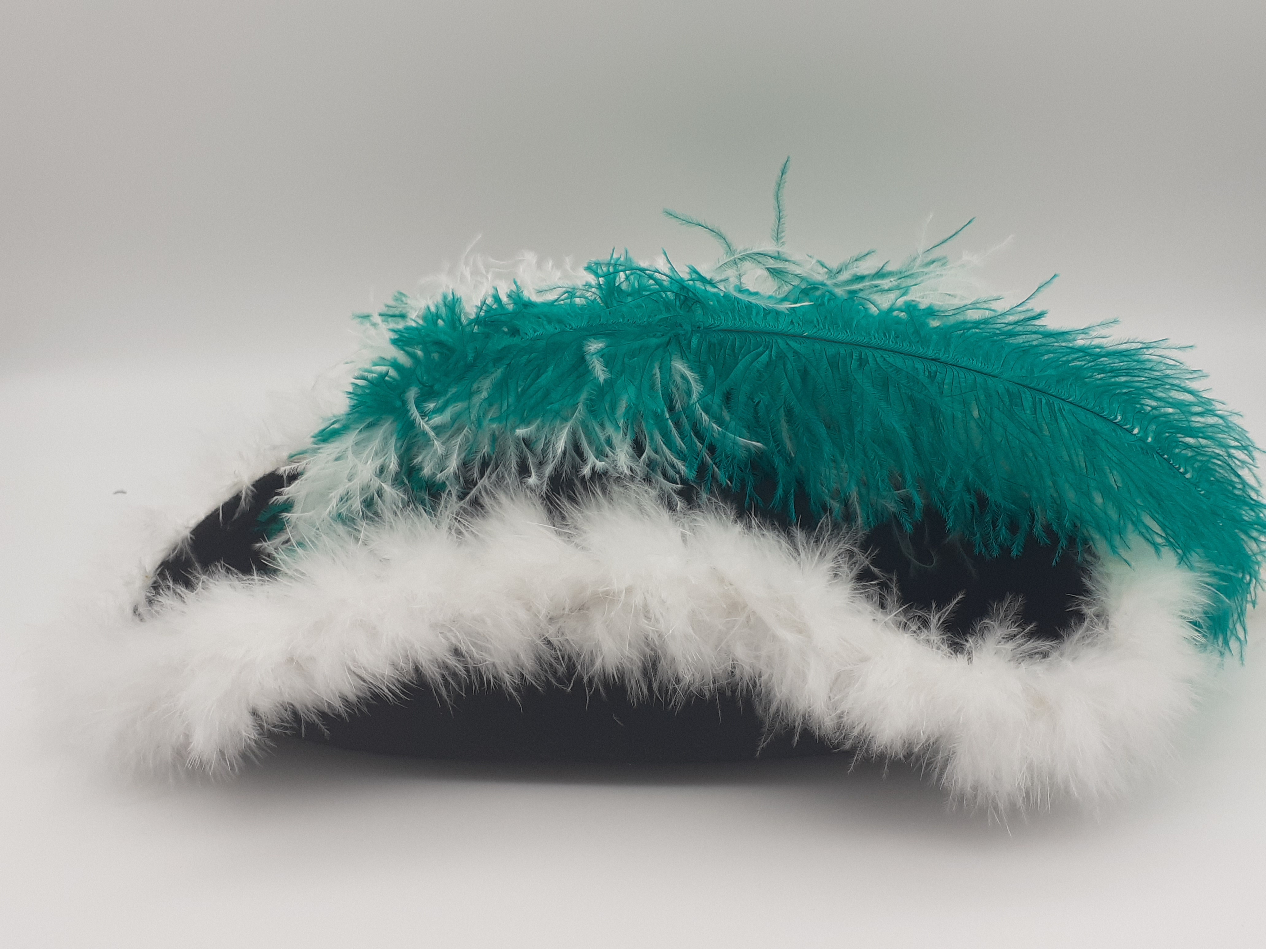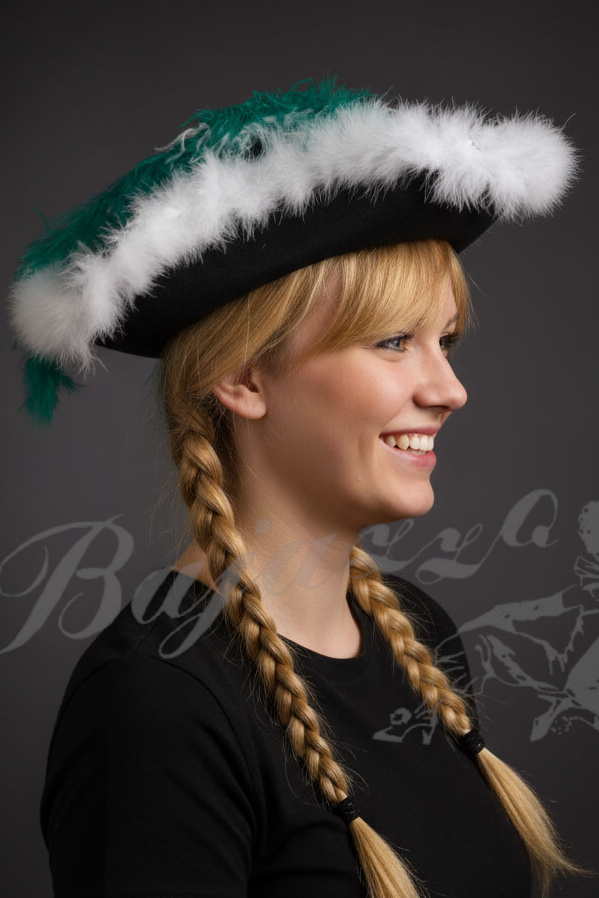 Sonderposten Funkenhut schwarz mit grünen und weißen Federn