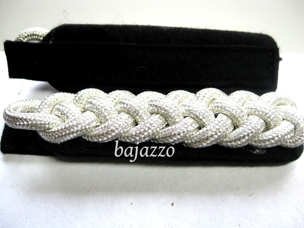 Uniformzubehör wie Epauletten, Feldbinde und Fangschnüre zeichnen einen echten Offizier aus. Aber auch Schulterstücke oder Schultergeflechte sind in unserem Sortiment. Zu jeder Uniform gehört das passende Geflecht als Auszeichnung.Entweder ein breites Majorsgeflecht in silber und Gold. Oder ein geflochtenes Schulterstück .Auch schmale Geflechte und geflochene Schulterstücke in silber und gold sind Auszeichnungen für die Uniformbesitzer. Zweistreifige Schulterstücke 2-streifig rot silber oder blau gold bezeichnen Ränge . 4-streifige Schulterstücke sind für einen anderen Rang.Feldbinden werden sehr aufwändig hergestellt. Alle diese Uniformteile und Uniformzubehörteile sind wichtig. Fangschnüre oder Königsschnure groß und klein sind eine weiteres Uniformzubehör. Geflochtenes kleines Schulterstück schwarz-silber