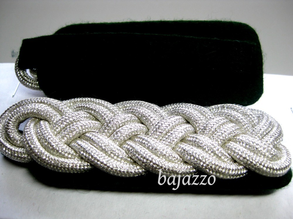 Uniformzubehör wie Epauletten, Feldbinde und Fangschnüre zeichnen einen echten Offizier aus. Aber auch Schulterstücke oder Schultergeflechte sind in unserem Sortiment. Zu jeder Uniform gehört das passende Geflecht als Auszeichnung.Entweder ein breites Majorsgeflecht in silber und Gold. Oder ein geflochtenes Schulterstück .Auch schmale Geflechte und geflochene Schulterstücke in silber und gold sind Auszeichnungen für die Uniformbesitzer. Zweistreifige Schulterstücke 2-streifig rot silber oder blau gold bezeichnen Ränge . 4-streifige Schulterstücke sind für einen anderen Rang.Feldbinden werden sehr aufwändig hergestellt. Alle diese Uniformteile und Uniformzubehörteile sind wichtig. Fangschnüre oder Königsschnure groß und klein sind eine weiteres Uniformzubehör. Majorsgeflecht schwarz - silber