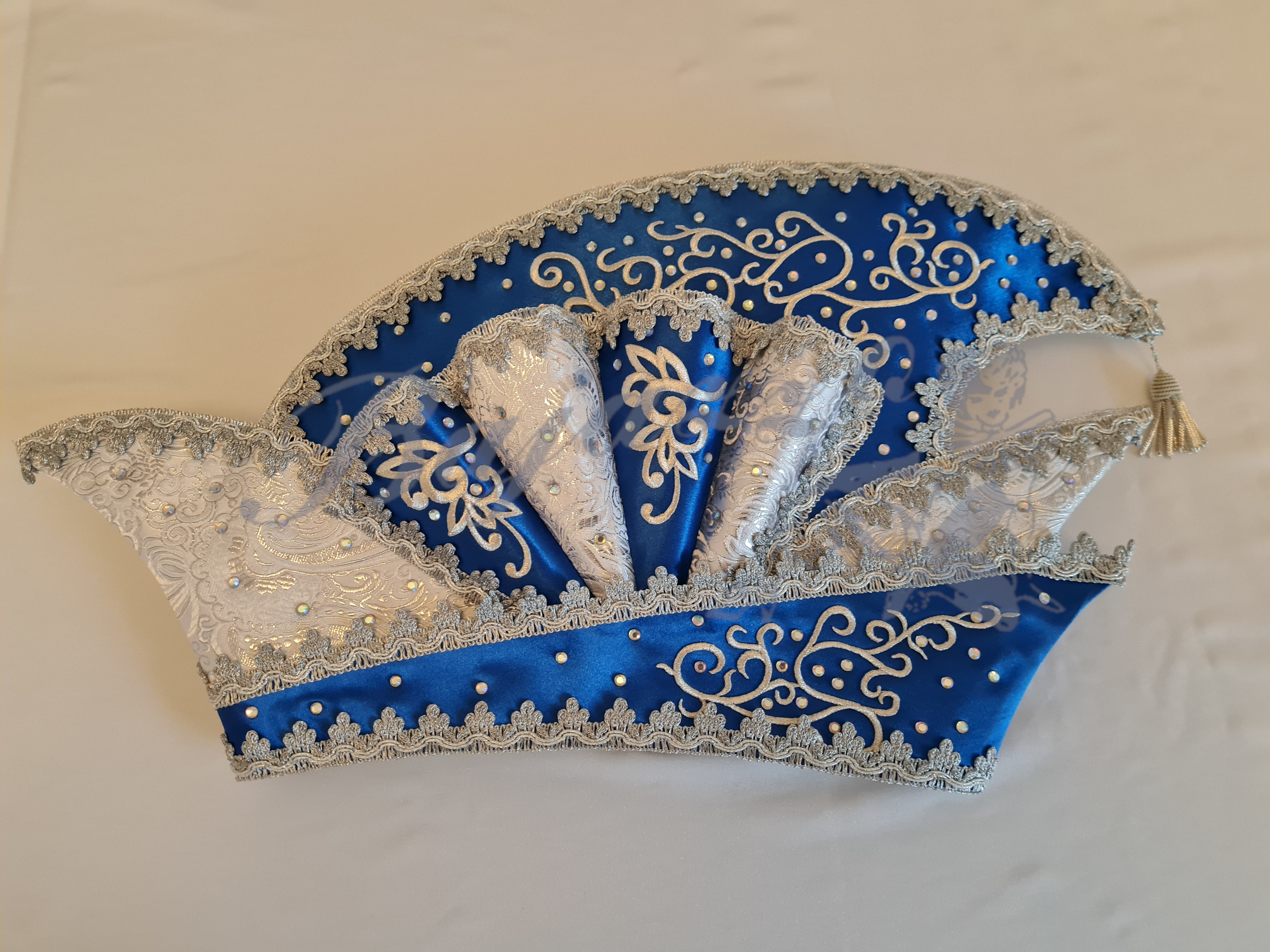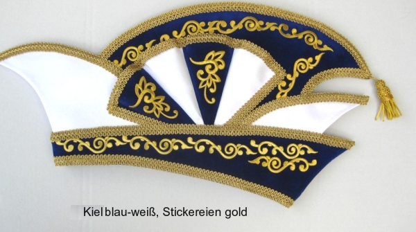 Prinzenkappen sind Bestandteil der Vereinskleidung. Da die Vereine ihre ganz speziellen Vorstellungen haben, fertigen wir alle Prinzenkappen nach Absprache mit den Kunden. Dabei kommen für alle Prinzenkappen verschiedene Farbkombinationen vor. Auch die Frage, ob mit Godldlitze oder Silberborde muß geklärt werden Prinzenkappen werden viele Jahre getragen und sind ein Aushängeschild des Vereins. Wir verwenden für unsere Prinzenkappen um unsere Kunden Neues anzubieten. Viele schöne Detaills zeichen unsere Prinzenkappen aus. Stickereien lassen wir speziell für die Prinzenkappen anfertigen. Wertvolle Borden und Bänder importieren wir aus der ganzen Welt. Wunderschöne Strasssteine vervollständigen die tolle Optik unserer Prinzenkappen,