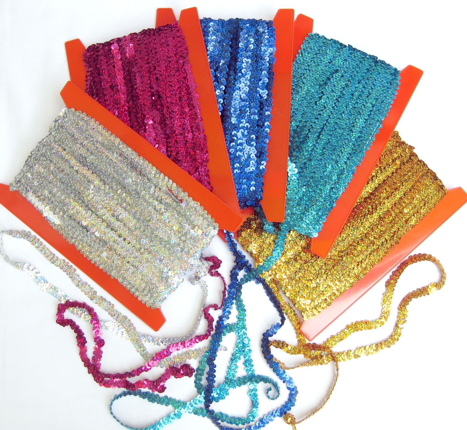 Paillettenbänder Stretch in verschiedenen Farbewn werden meist aus Indien oder China importiert. Dort haben Paillettenbänder Stretch eine lange Tradition. Unsere Garde kostüme und Mariechenuniformen bekommen mitPaillettenbänder Stretch ihren besonderen Glanz. Besonders Paillettenbänder Stretch in vielen Formen und Farben sind sehr gefragt. Mit Paillettenbänder Stretch werden Kostüme aussagestärker und mit den verschiedenen Farben gibt es die Möglichkeit zu weiterer Gestaltung.