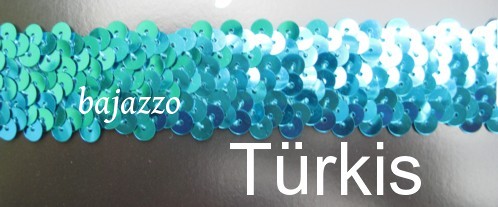 Bei elastischen Stoffen werden dann Paillettenbänder preiswert verwendet , damit sich das Band dem Stoff anpassen kann Elastische Paillettenbordenpassen sich jeder Bewegung an .Paillettenbänder preiswertgibt es in vielen Farben und wird immer beliebter. Paillettenband Stretch türkis