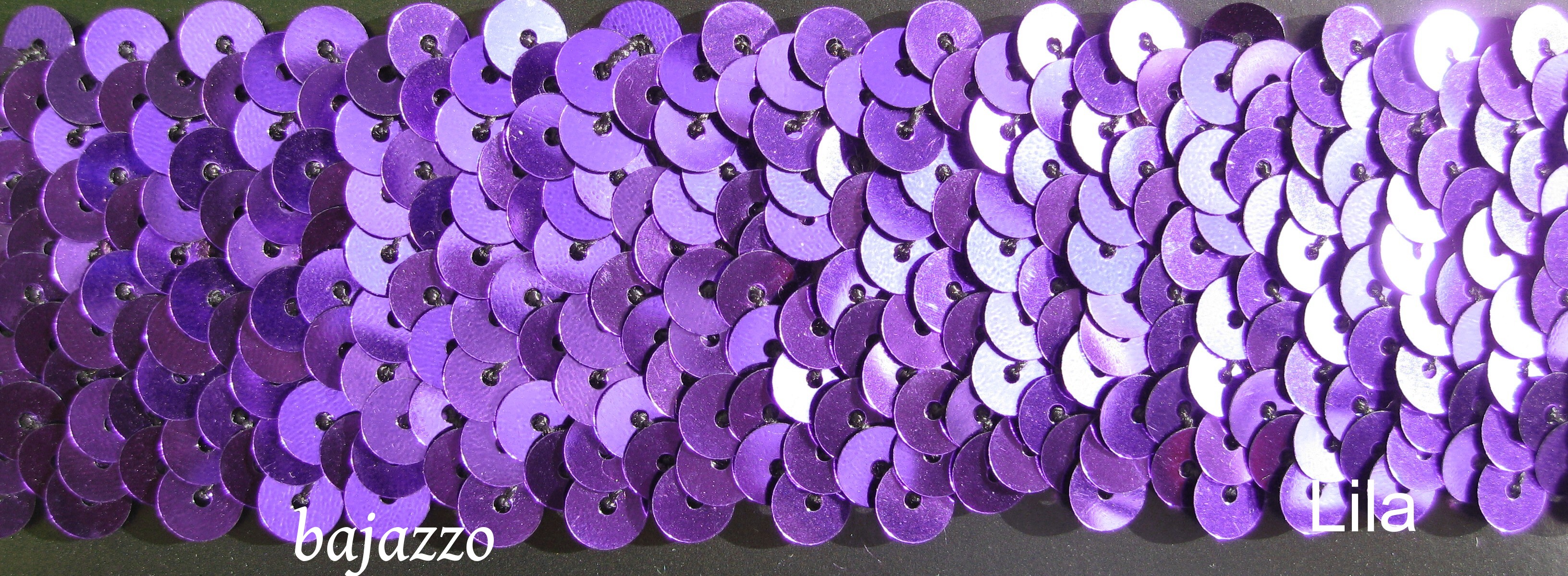 Bei elastischen Stoffen werden dann Palettenband Holo silber verwendet , damit sich das Band dem Stoff anpassen kann Elastische Paillettenbordenpassen sich jeder Bewegung an .Palettenband Holo silber gibt es in vielen Farben und wird immer beliebter. Paillettenband Stretch lila