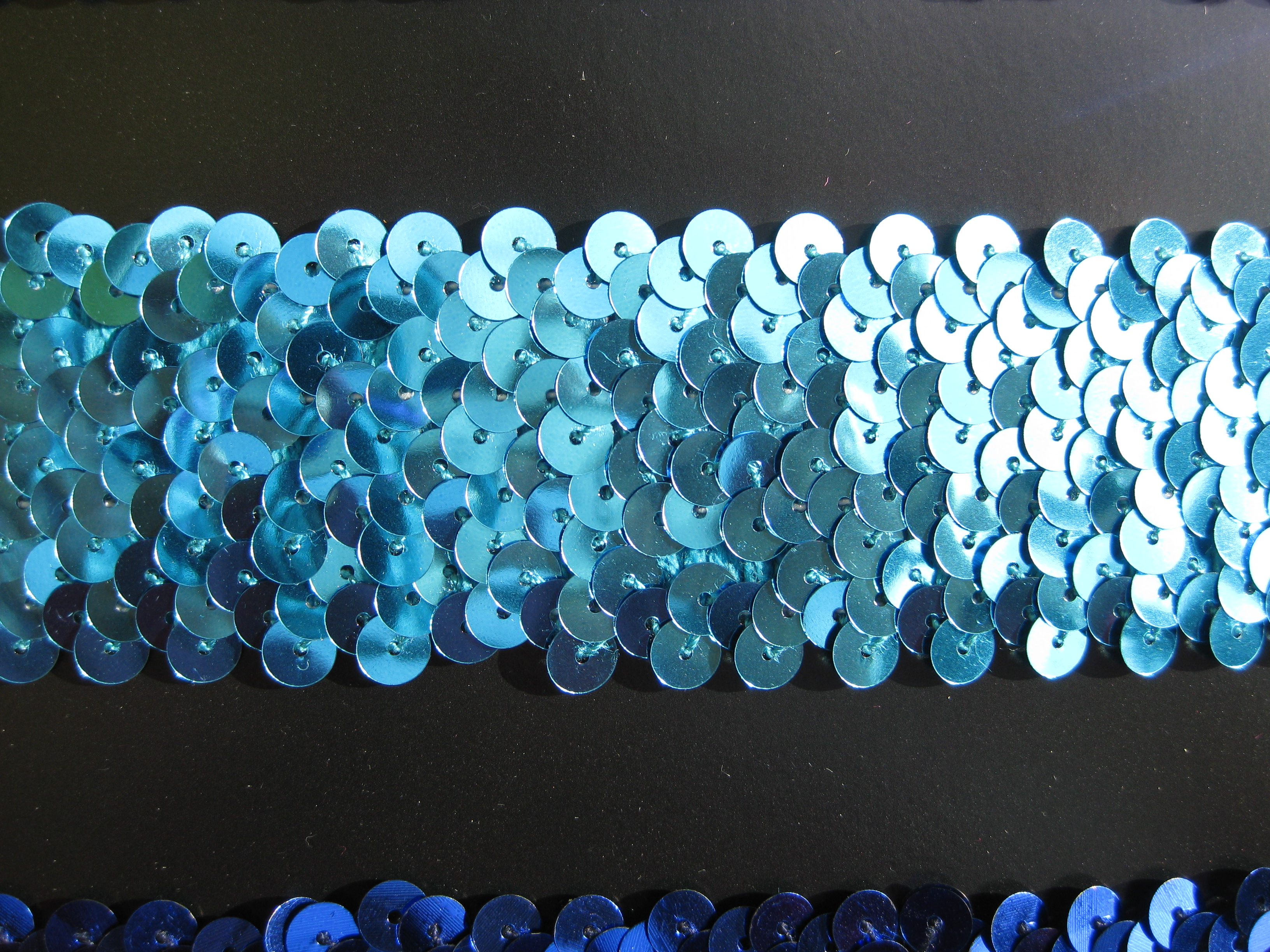 Bei elastischen Stoffen werden dann Palettenband Holo silber verwendet , damit sich das Band dem Stoff anpassen kann Elastische Paillettenbordenpassen sich jeder Bewegung an .Palettenband Holo silber gibt es in vielen Farben und wird immer beliebter. Paillettenband 5 Stretch 4cm breit türkis