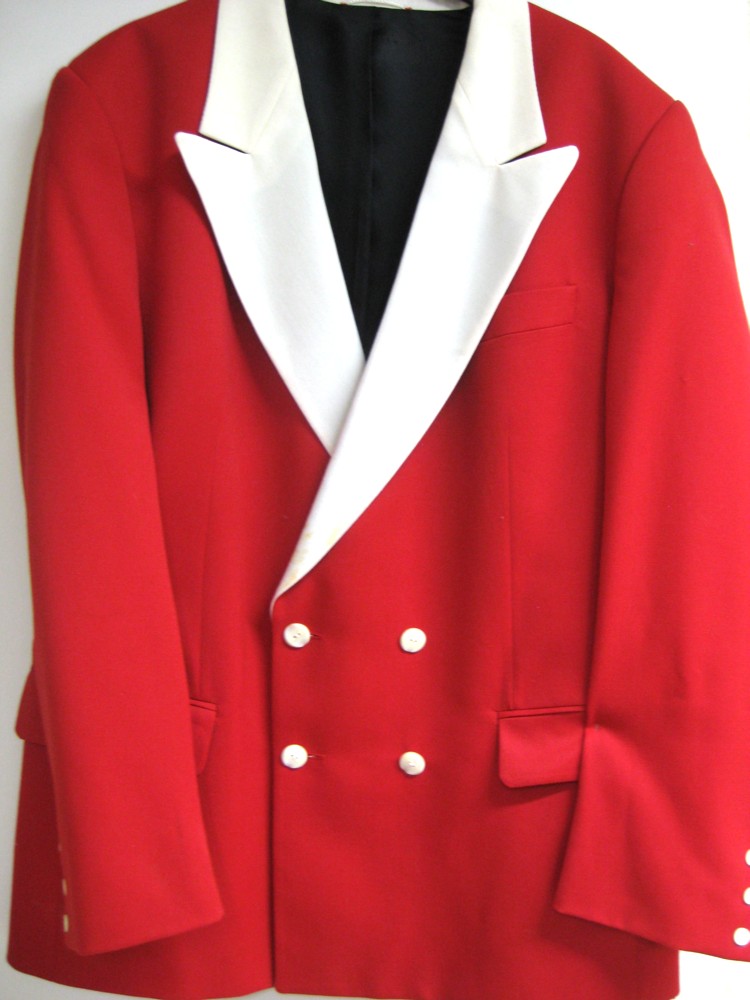 Zweireihige rote Elferratsjacke mit weißem Kragen Größe 54